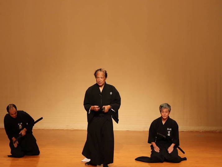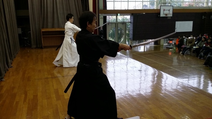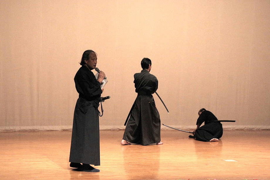 居合等の武道は我が国の伝統的なものであり、使用する日本刀は我が国が世界にほこる文化財であることをも合わせて居合の技とともに解説させていただきました。