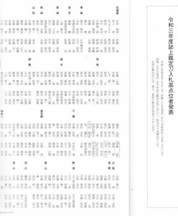 刀剣美術誌の誌上鑑定にて埼玉県居合道部の方々が令和3年度高位得点者として表彰されました、おめでとう御座います。