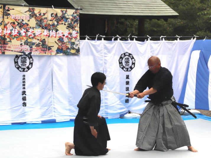稽古する内容は、夢想神伝流という流儀の型演武が主ですが、年間行事として座禅や試し切りなども会員の希望に応じて企画致します。