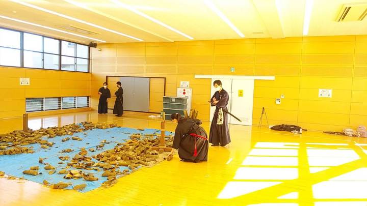 試し斬りは、90㌢の巻き藁の上60㌢部分を・・・・・・・・・・・
