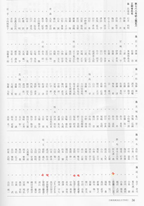 刀剣美術誌上刀剣鑑定刀と過去の鑑定刀解説と当たりを取られた方々。